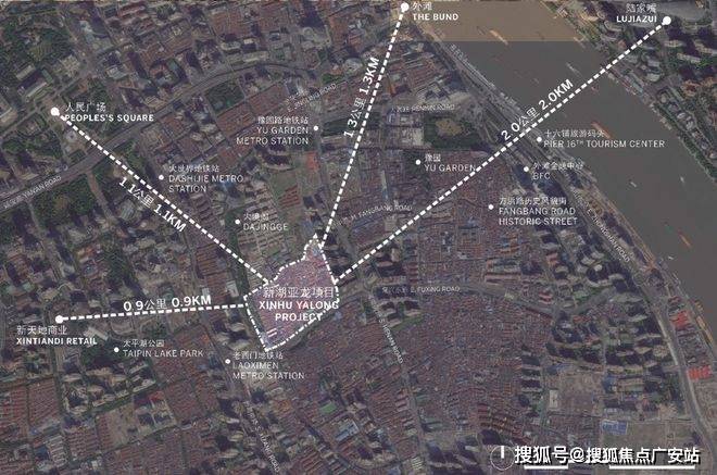 距新天地直线距离约900m,陆家嘴直线距离约2km,外滩直线距离约1.3km。