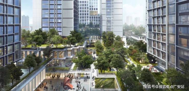 根据意向效果图,雅宾利4期预计为开放式社区设计,采用空中花园将社区立体连接在一起:项目将会采用地面抬高3层的设计,其中3层以下为商业底盘。