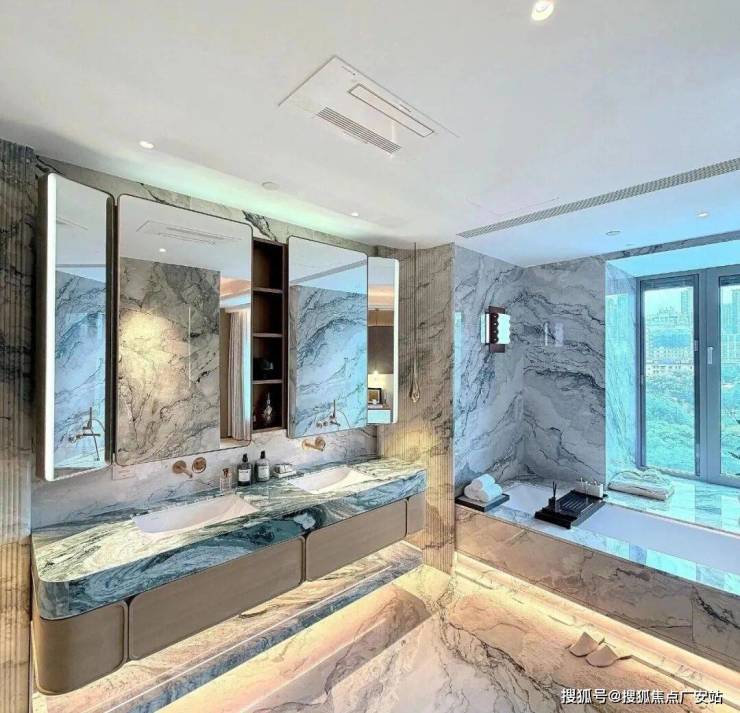 豪宅中,会所+泳池已经成为市场标配。但是万科中興傲舍,真正做到了 “把艺术作为生活的一部分” 。植物园泳池放在了2楼,选用了皮革面的绿色石材,营造一种树影斑驳的感觉。里面的绿植不是装饰,都是鲜活的、精心照养的。