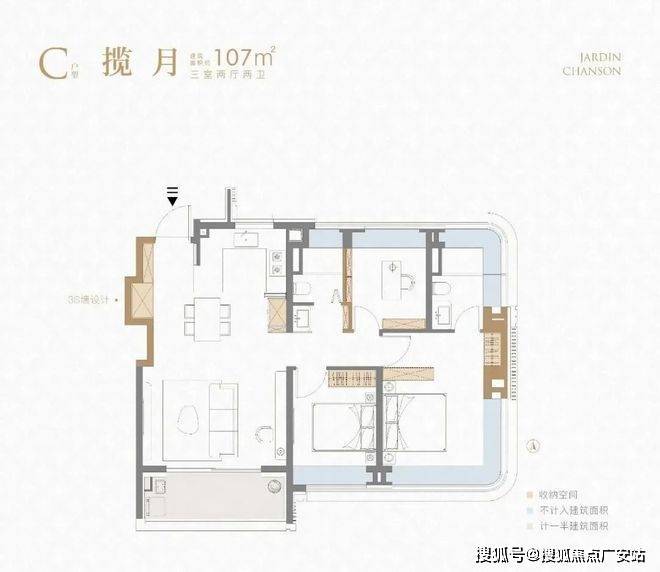 这个建面约107㎡刷新了我对百平三房的新认知,据悉该户型或将申请专利,实至名归!