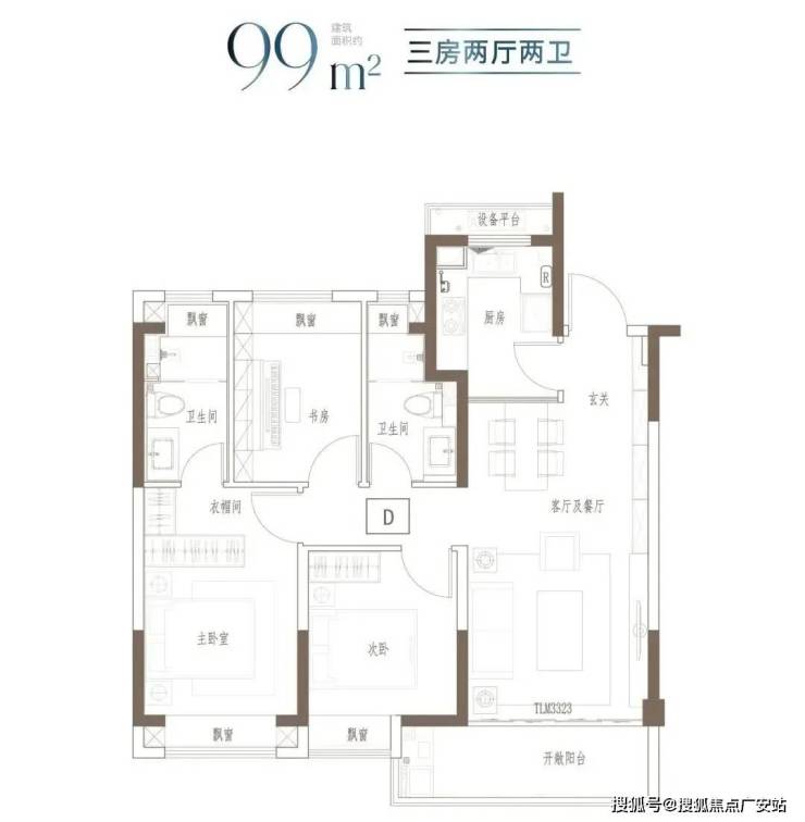建面约91㎡-121㎡ 3房2厅2卫;这几个户型都是3房的设计,满足想一步到位的购房者。3开间朝南+客餐厅连通阳台+全卧室飘窗,以及套房式主卧设计+2卫,即使是三代同堂,也能让生活从容。