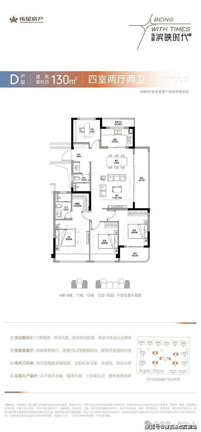 建面约130方轩敞四居一步到位改善四房,格局优秀,三开间朝南,双阳台配置+大采光面,兼顾晾晒与社交休闲功能的同时,采光、视野与通透性,也能得到很好的保证。