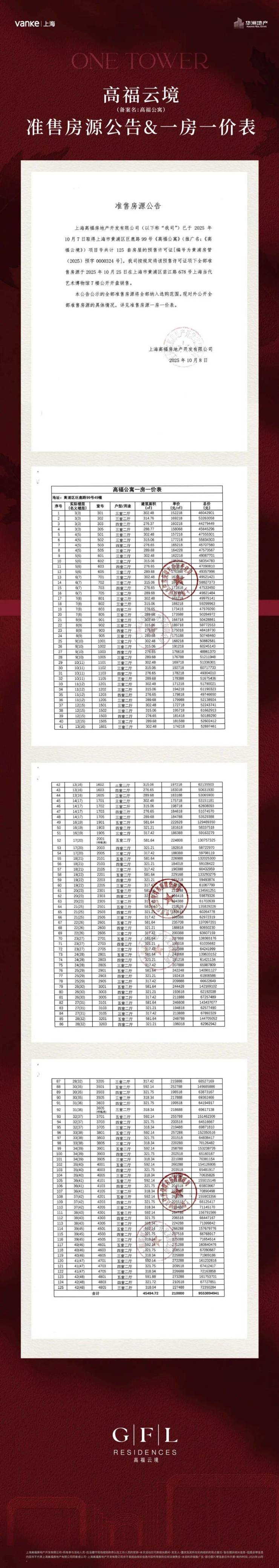 【高福云境】高清一房一价表(认购细则见文末)