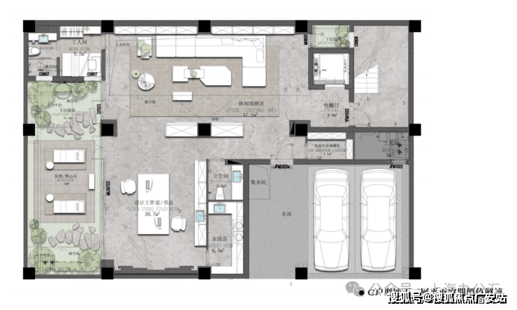 ⑤地下室设计6米挑高客厅、附有下沉式花园采光天井、豪华装修交付标准、带电梯