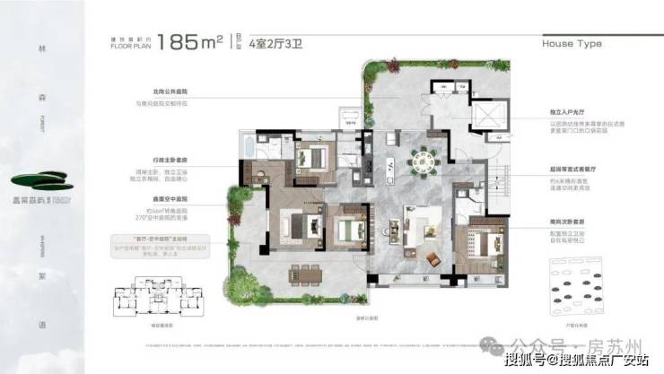 ·产品规划:建面约150㎡、185㎡、220㎡,户均约30-50㎡空中庭院