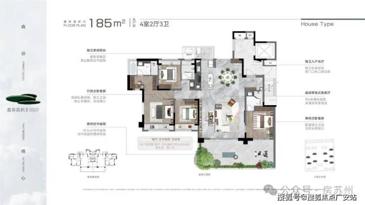 创新曲面转角院落,并实现全户型搭载“客厅-空中庭院”的主动线设计,整体营造立体墅式庭院生活场景。