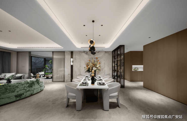以空间收纳欢悦的时光,为生活赋予艺术的慰藉。约270°环幕社交三联厅,相连开合厅,通过空间的布局和光影的配合,场域与场域的贯通,营造为充满艺趣的社交场景,混合交叉又充满个性,开合之间,私密会客、开放式交流,家庭成员的个性需求,都一一得到照顾。