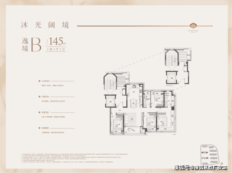 145㎡ 4 房 2 卫:四开间朝南、LDK 一体化、约4.2m 横厅、主卧套房、改善一步到位。