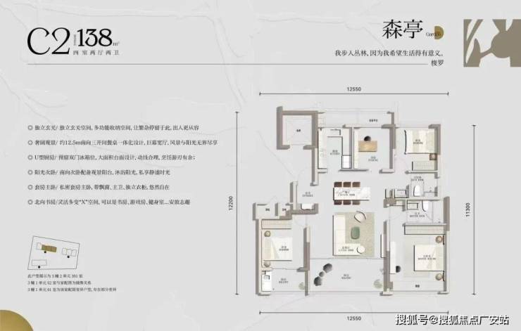 以建面约138㎡的边厅四房为例,阳台较此前同类户型,足足大出约3.9㎡。户型实用面积达约92%,尺度感远超板块次新房。