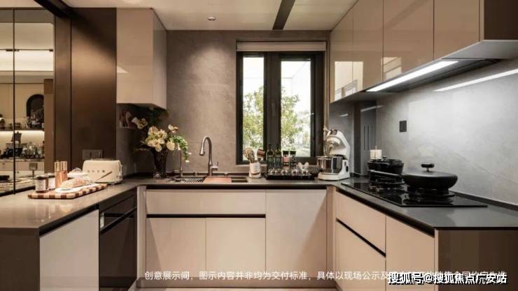 U型厨房,做成半开放式的,实际交付会有移门。