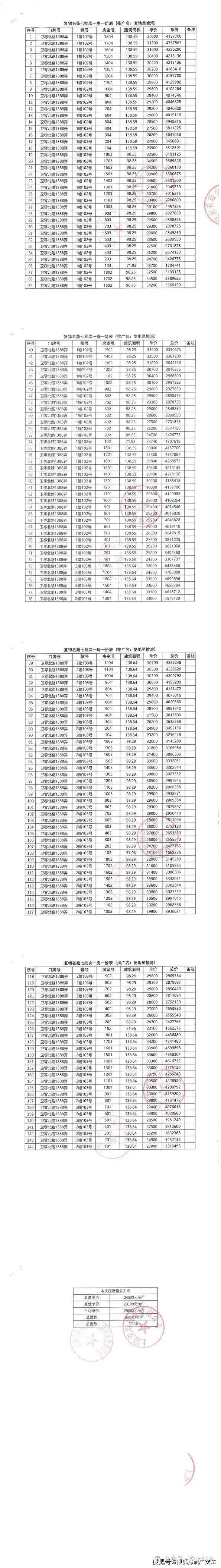 项目一房一价表