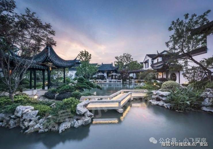 【桃源七境】※创上海桃源之最 园内设置七处景观组团,以中国各大古典名园为借鉴,并融入宋代的雅致生活韵味。宋式园林更强调“精而造疏,简而意足”,擅以意山水画为蓝本、以画设景,诗词为主题。步履其中,移步换景,步步生趣。花园组团规模扩大,户户有景,各自成趣,或临廊听雨,或观亭赏风,居住更为诗意,外部四水环绕,内部双龙戏水,以水带路,园以水活 从外部来讲,上海桃花源拥享滨江壮阔之景,悦享“护城河”宁静之韵。从内部而言,上海桃花源金瑞园大幅优化水街格局,延承苏州平江古城水巷交错的江南风格,形成“双龙戏水”十字交汇格局。水街从中轴景观辐射,沿东西、南北两个方向发散,通过增加水景长度,延伸水景曲折性与丰富感,让水景更具东方园林之韵。同时,上海桃花源还打造水景两头的端景园林。水景大幅增加后,家家有水景,别有一番意境。