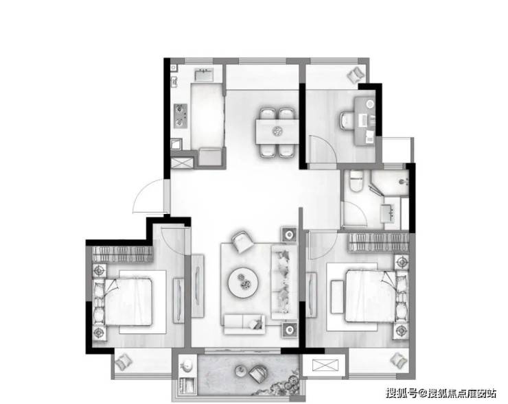 餐客一体,U型厨房,主卧套房
