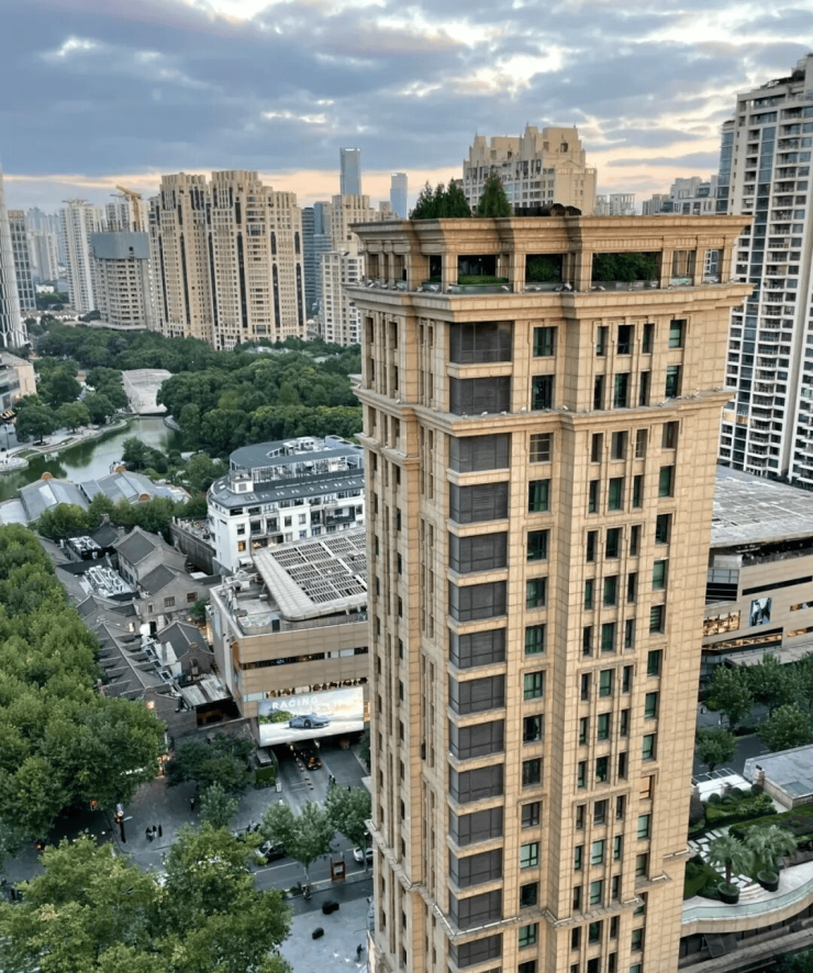 不同于滨江顶豪的“壮阔江景”,华府天地的视野的是“老上海的烟火质感”:推窗就能看到错落有致的石库门建筑群,楼下是梧桐掩映的街巷,远处是新天地的霓虹灯火,白天看老洋房的复古肌理,傍晚看商圈的璀璨夜景,夜晚听街巷的静谧回响,自带“复古电影滤镜”,随手拍一张都没有网红感的刻意,反而透着“隐于繁华”的高级感。