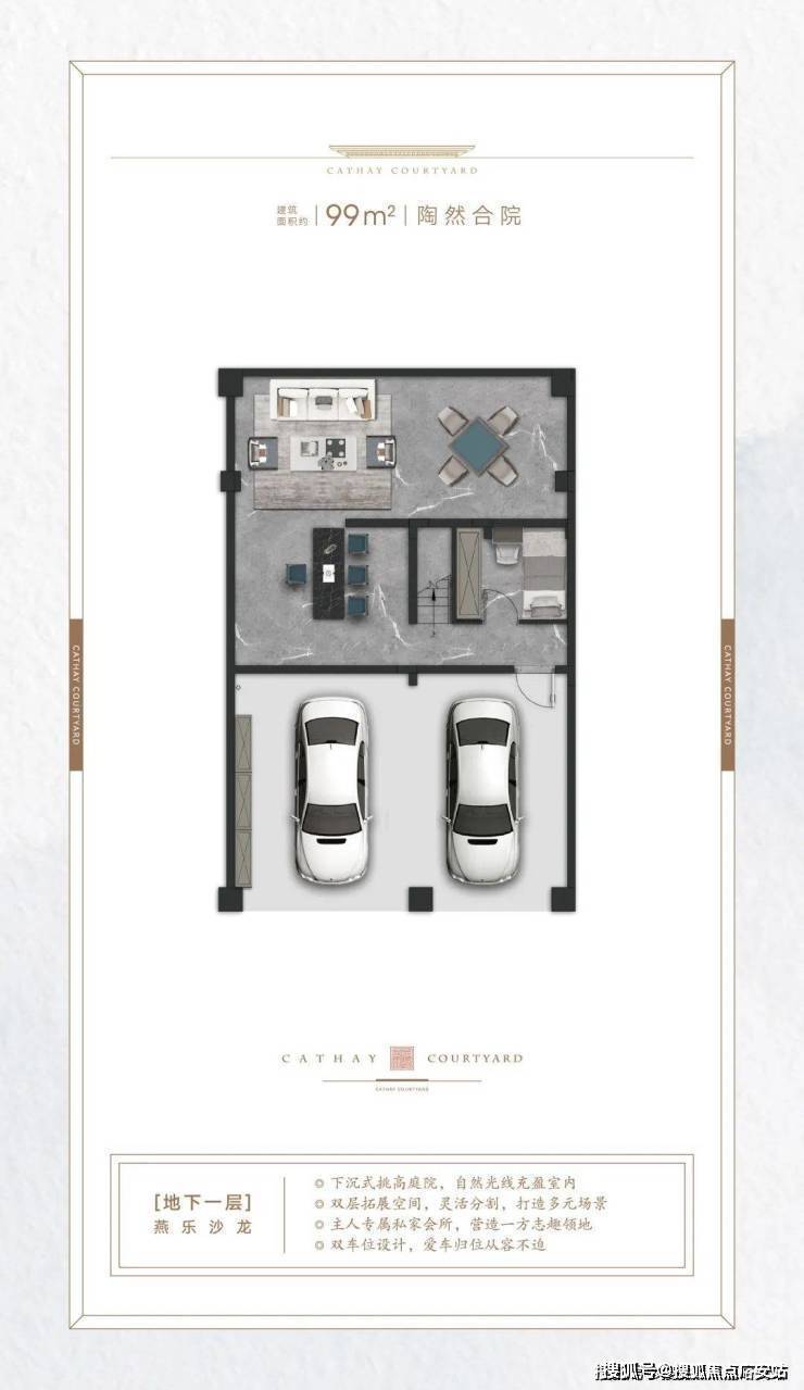 它实现了完整的“有天有地”,做到了地上2-3层+地下2层。不像叠墅,花园或露台通常只能二选一,营造了丰富的“垂直生活体系”生活。