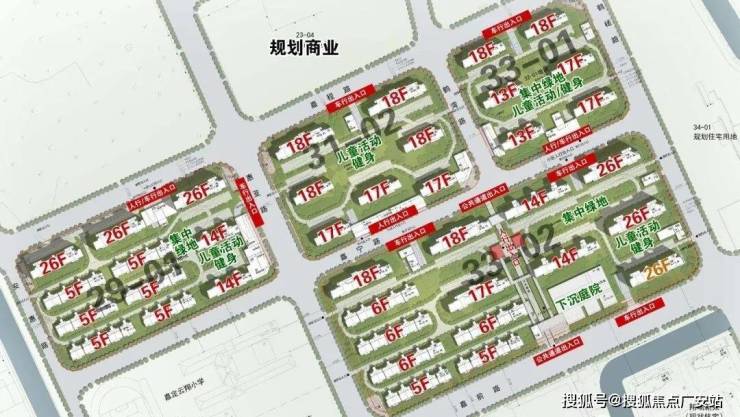 根据公示图显示,该项目的4个小板块最高层为项目东南角和西北角的26层高层,共有6栋,高度接近地块限高的80米(77.80米);18层的共有8栋;17层共有6栋;14层共有4栋;13层共有2栋;6层的共有4栋;5层的共有8栋。