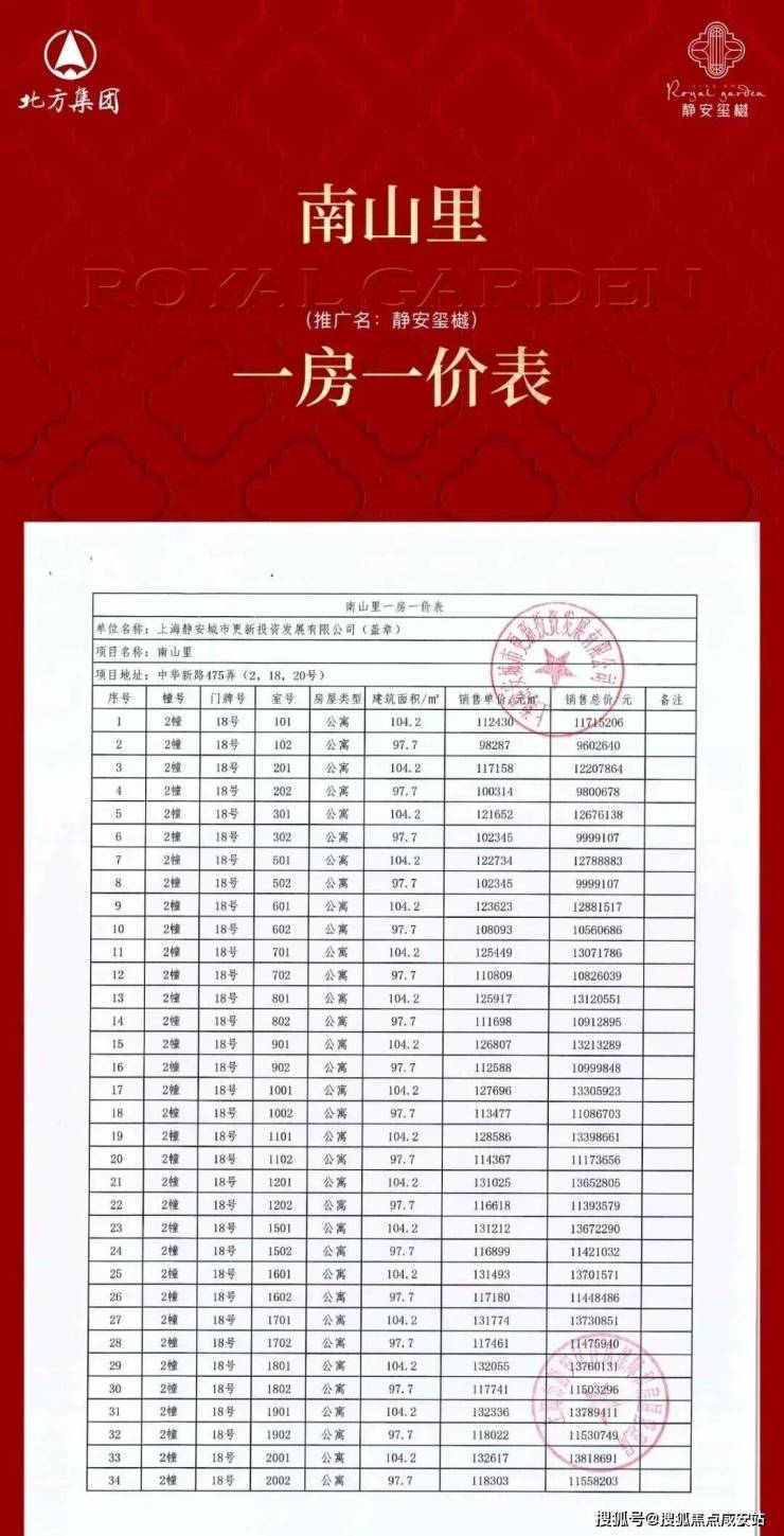 静安玺樾三期一房一价表▼