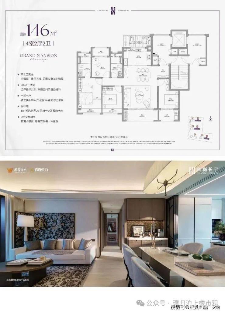 146㎡ 四房两厅三卫:1950–2240 万|大面宽横厅、双套房、全明格局