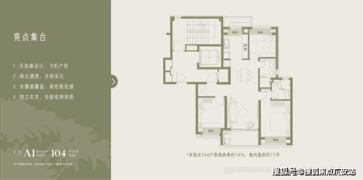 作为滨江核心商务区的稀缺三房产品,104㎡户型以极致的空间利用率,满足三口之家的全周期居住需求。纯板楼无连廊设计,规避了传统户型的采光死角与隐私泄露问题,实现全屋南北通透。独立玄关衔接专属储藏空间,打造高效收纳体系,让居家空间告别杂乱。