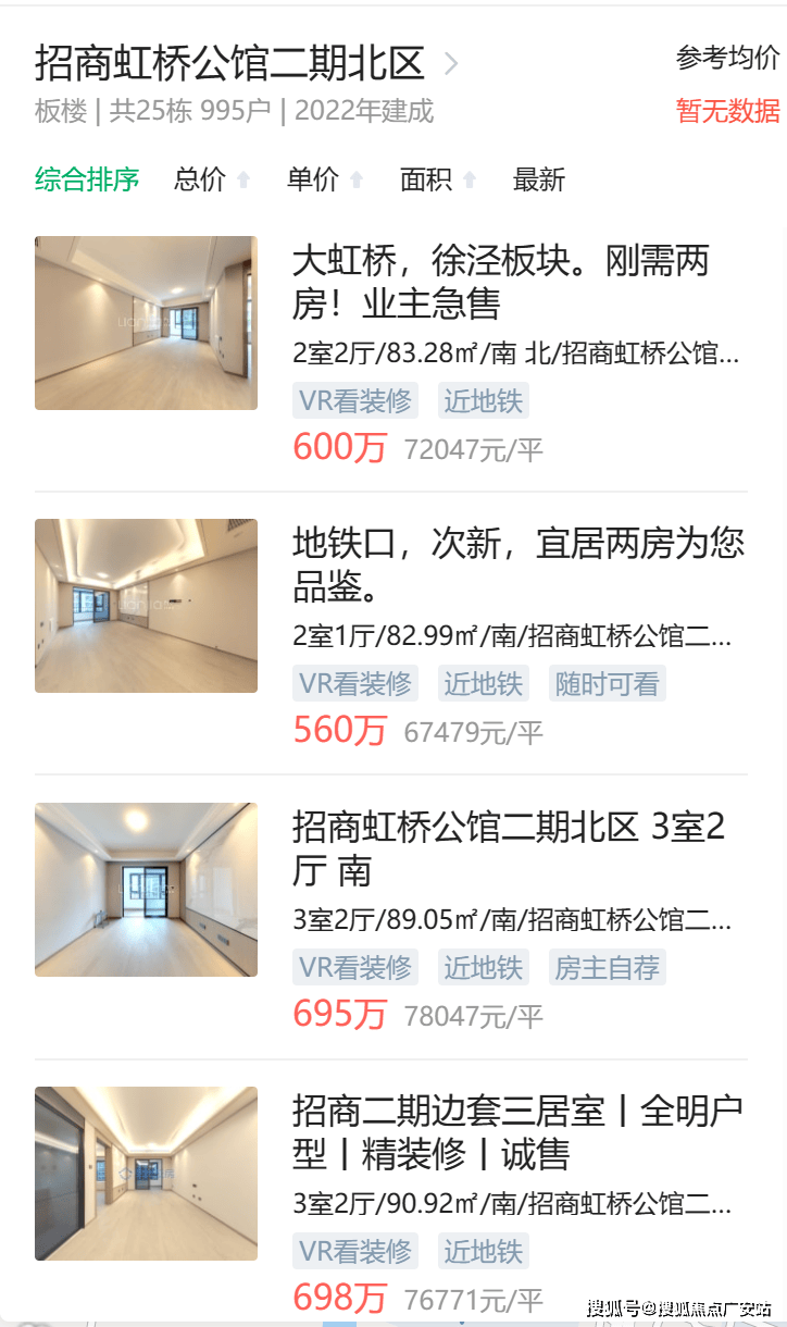 最近的例子就是招商虹桥公馆。临河的招商虹桥公馆1期二手挂均牌价就是要比不临河的招商虹桥公馆2期要高约2千/㎡,部分房源甚至可以高出约7700元/㎡。(数据来源:链家)