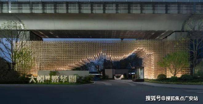 社区形象大门,采用现代简约的设计手法,通过加宽以彰显门头的形象感,石材质感墙面与金属线条的搭配,打造品质感细节,强化归家的仪式感和尊贵感。