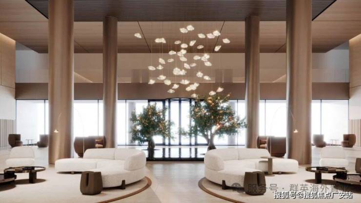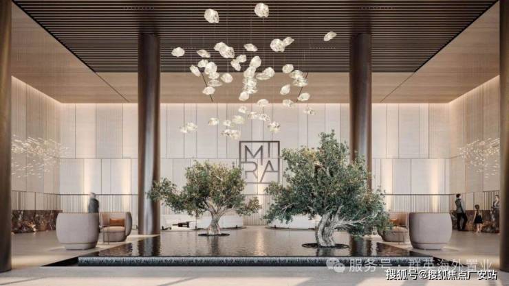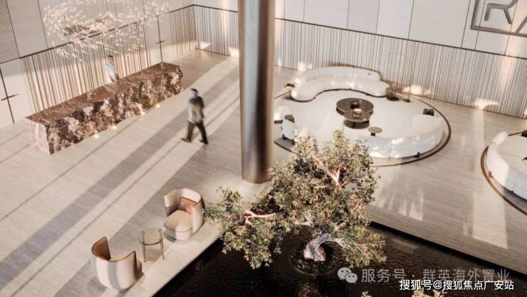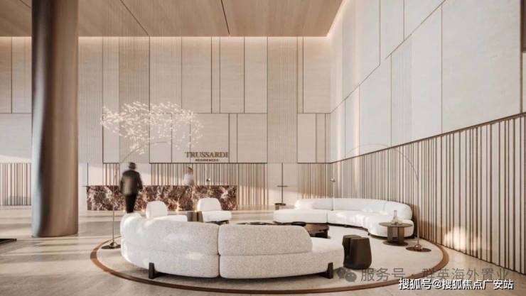 大厅,TRUSSARDI 风格设计,休息、办公区,无边水池、橄榄树,大厅高度 7 米。