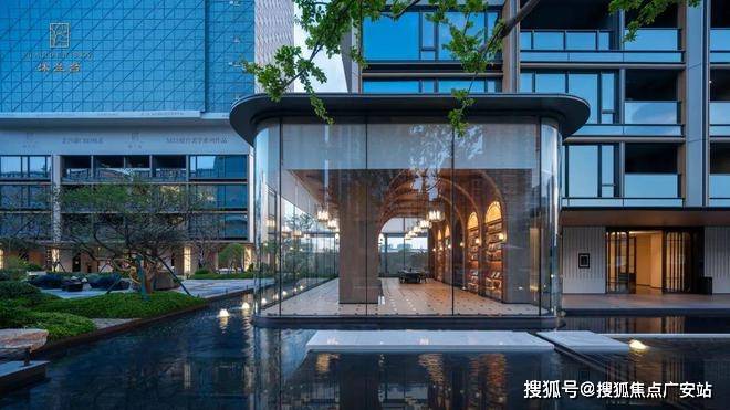环绕在庭院周围的是六大云端漂浮会所。值得一提是那座凌于水畔的玻璃图书馆。它的灵感,源于都柏林圣三一学院图书馆,挑高约7米的木色拱顶、流动的光线与严谨的比例,使人仿佛置身于霍格沃茨的回廊之间。