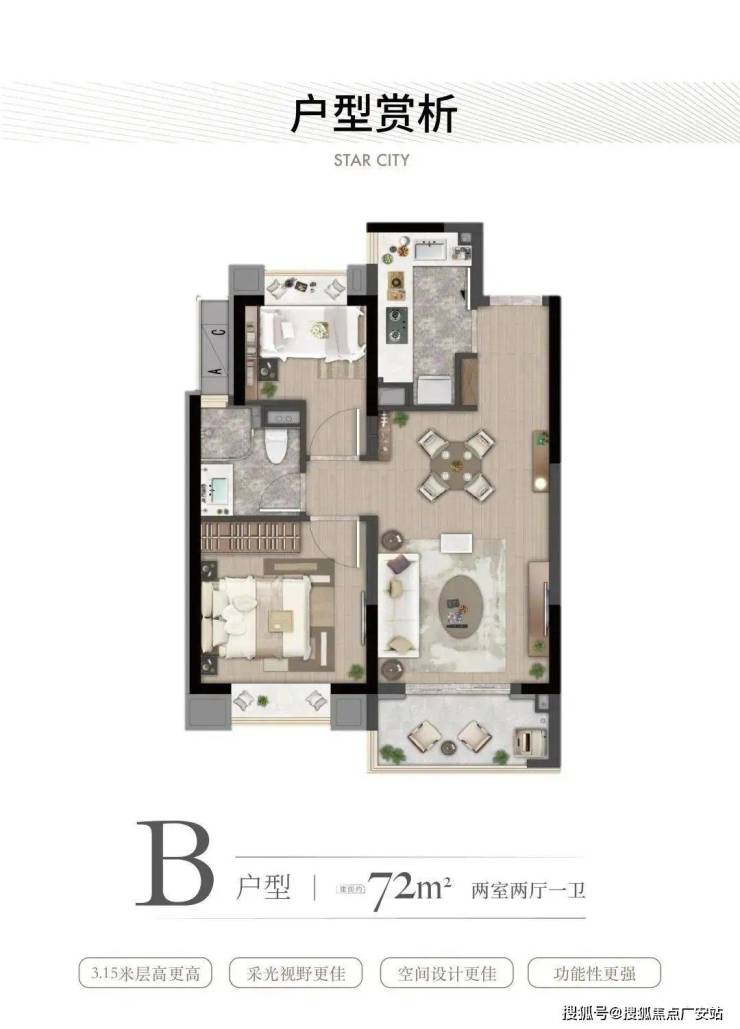 The third phase of Hongqiao Canyao Star City is currently selling 2-3 bedrooms with a construction area of approximately 72 to 88 square meters