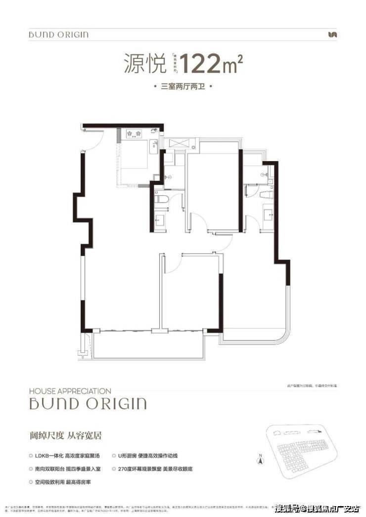 建面约122㎡3房2厅2卫▼