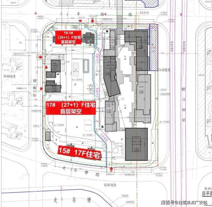 11-01地块为商住办混合用地,住宅分布在地块的西侧,由3幢高层住宅组成。社区内部有大面积的水系景观,商业和住宅部分有公共通道分隔,全部人车分流。