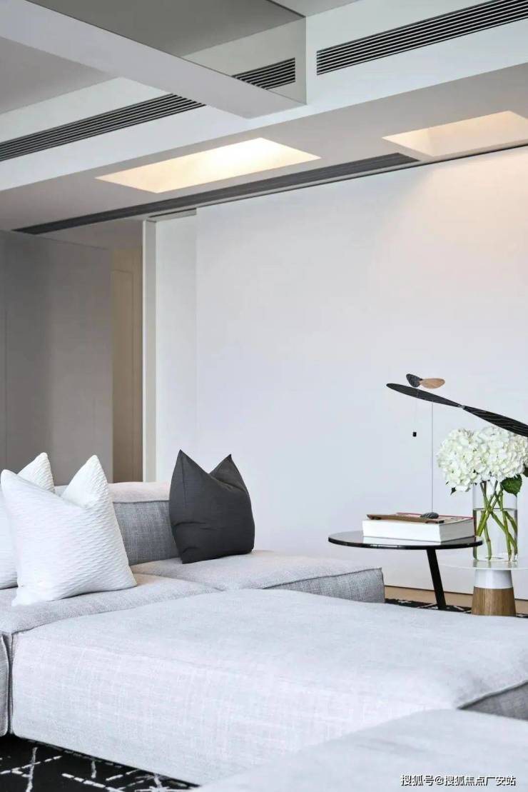 设计师以“开合的秩序”为核心概念,两扇隐形的推拉门是整个空间的调节装置。门扇闭合时,书房变成独立的空间,打开时,又很好的融入客厅场所。