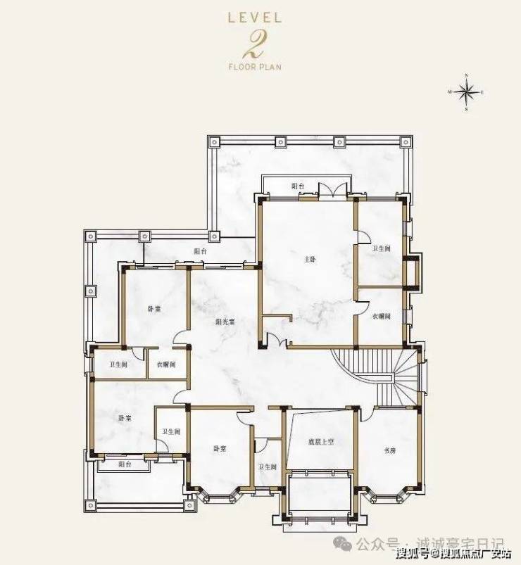 地上两层布局:无地下室设计,层高4.2-4.8米,南向面宽达30米,配备7房4厅6卫及超大私家庭院58。