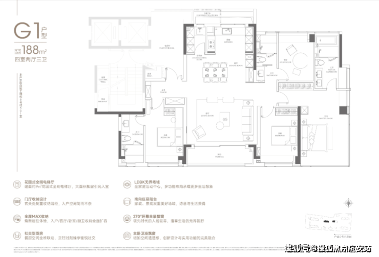 在售户型 建面约108㎡三房、125㎡/133㎡/165㎡四房、188㎡奢阔四房