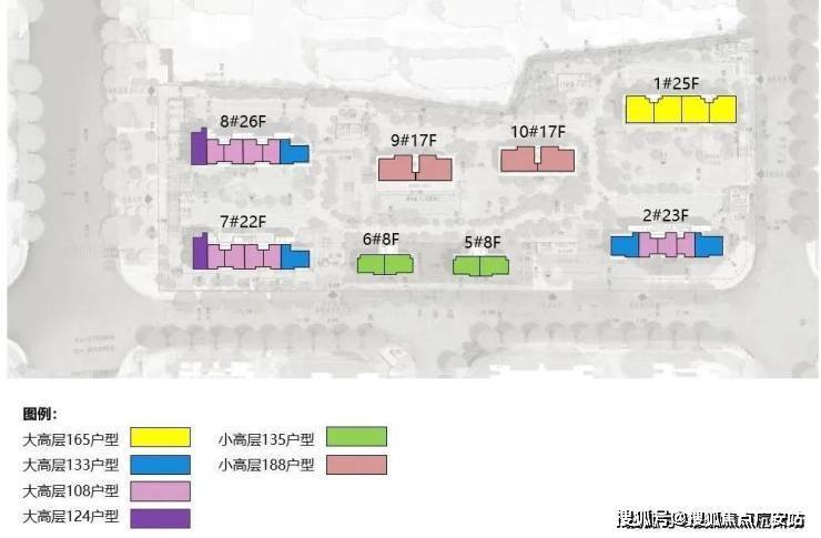 根据设计方案显示,该地块拟建2栋8F小高层住宅、6栋17-26F高层住宅以及若干社区配套用房;项目地面无车位,全人车分流,除5#、6#外,其余楼底层全架空,预计打造泛会所概念!