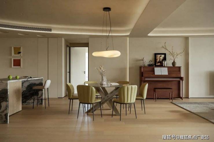 客餐厅以连贯视角奠定视觉基调,顶面弧线替代尖锐线条,贯穿空间削弱压迫感,延伸视觉开阔度。柔和暖色调交织出丰富层次,搭配弯曲线条勾勒轮廓,营造松弛宁静的生活氛围,弧线更成为串联空间的点睛之笔。