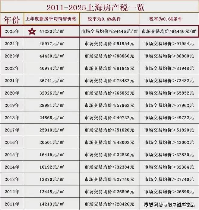 2025.5月上海最新房产税标准: