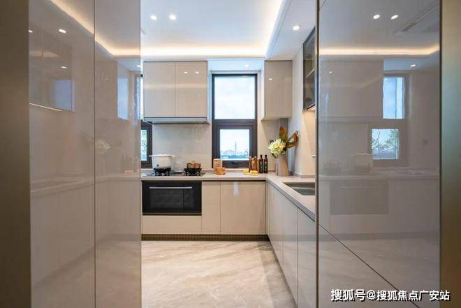 项目厨房使用方太的灶蒸烤一体机、吸油烟机三件套交付,更有弗兰卡的水槽、龙头,定制橱柜,诺贝尔的地面、墙面,石英石台面等