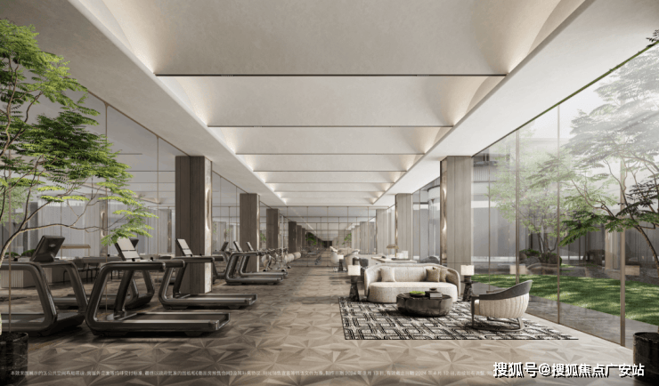 3、搭载大落地窗环模设计的健身房,在欣赏窗外景色的同时,高端的健身器材,丰富的健身配套,都可以满足业主日常的健康所需。
