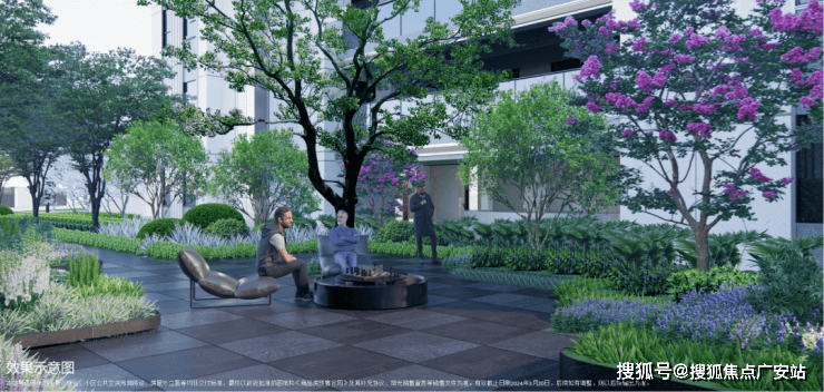 由香樟、迷迭香、夜来香等构筑的芳草花厅,缤纷色彩与清新芬芳相结合,为业主提供野餐、放风筝等场景活动;