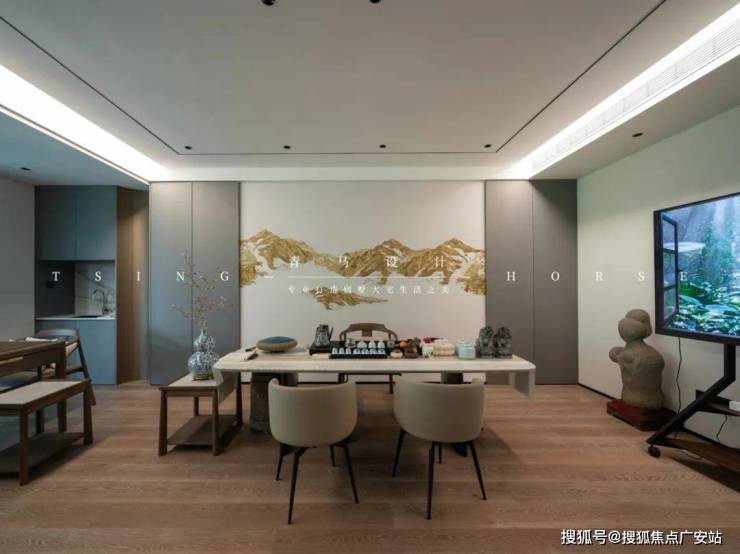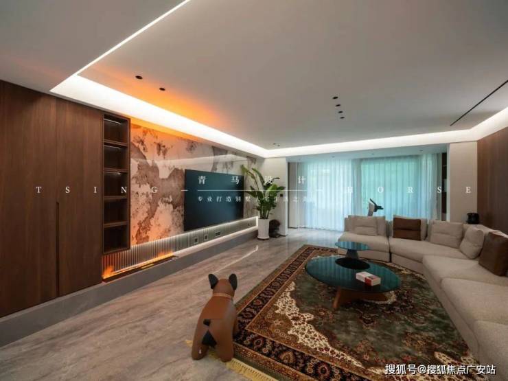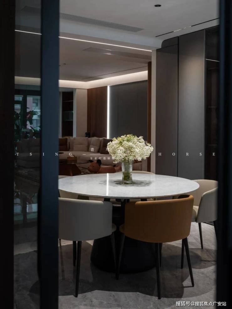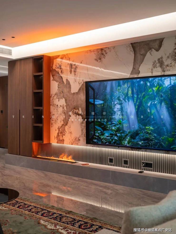 原户型一进门就能看到客厅的全貌,所以在方案设计中特意设计了一个屏风,一是可以让客厅的隐私性更好,二是屏风造型在灯光氛围的烘托下,回家的仪式感直接拉满。