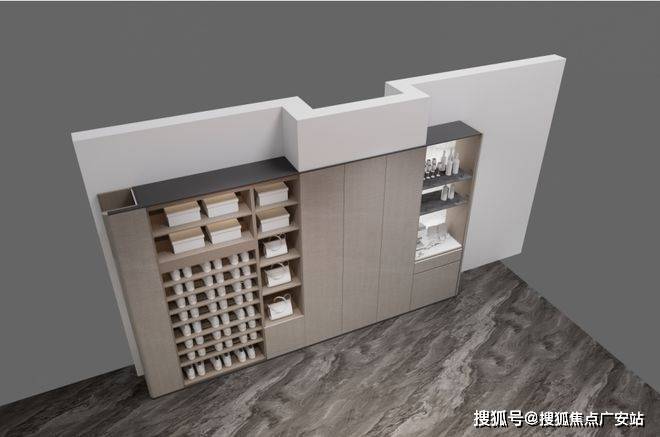 和约99平户型不同,约143平户型在玄关柜末端还设置有半开放水吧台,丰富生活场景: