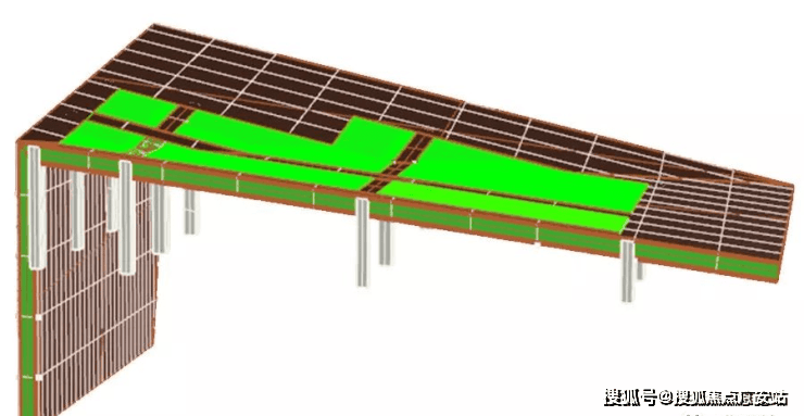 屋顶金属飘蓬为空间折面板对拼,不共面;为了指导钢结构工程的现场施工定位,弗思特重新根据混凝土结构图、钢结构图、