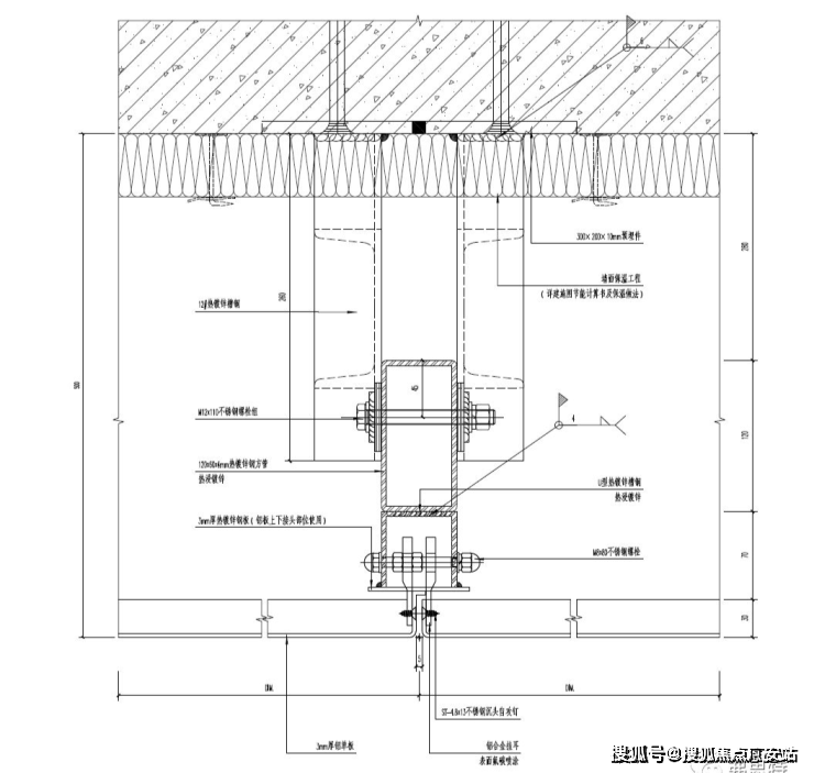 根据不同的外立面形式,本项目铝板系统分两种,第一种为常规打胶铝板幕墙,第二种为吊挂铝板幕墙。