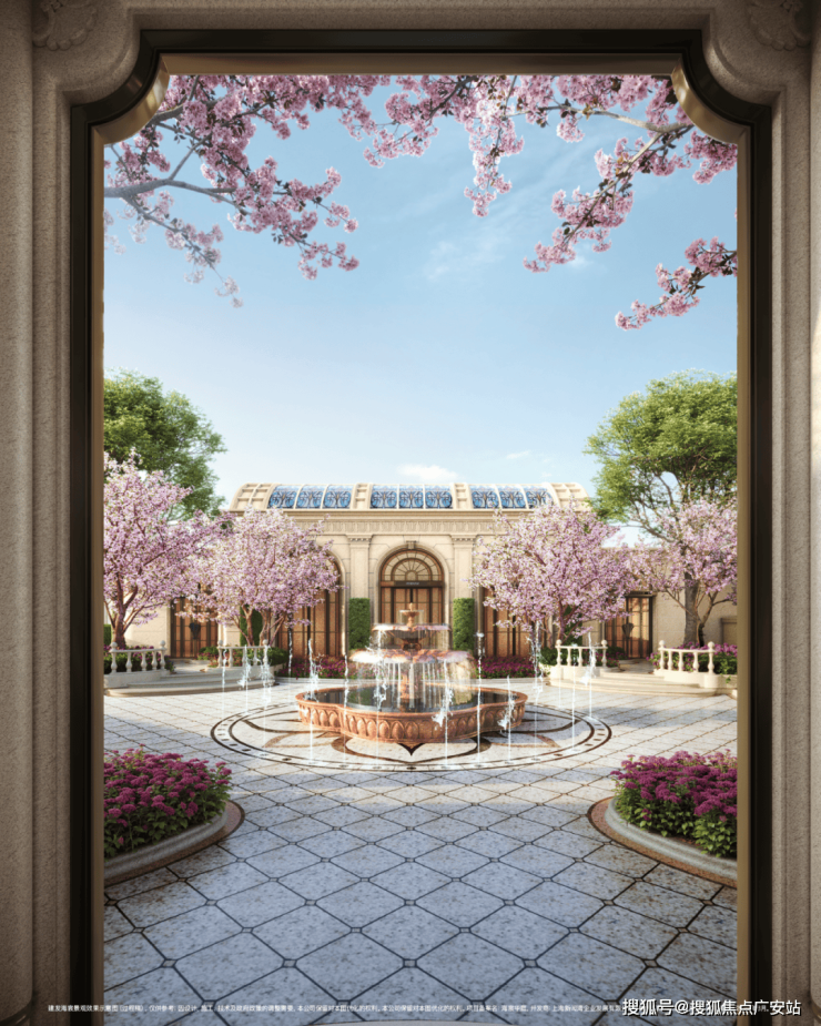 以水为引,起承转合,以海天华堂、华亭烟雨、凤亭问泉,清涟夜月、黄浦秋涛等景观组团,悠然铺陈东方院落式归家礼序。