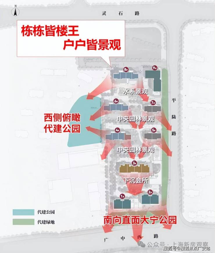 从规划图来看,项目前排可直面大宁灵石公园无敌景观;而办公部分设置在地块东北侧,也有隔断进行出入口区分,对住宅部分来说几乎没有影响。