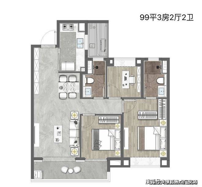 约99m²3房2厅2卫(高层)