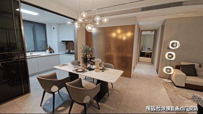 一眼惊艳的就是约6.5米横厅,有效实现客餐厅一体化设计,将公共场域连通,放得下居家的日常时光,孩子也有游玩的天地。