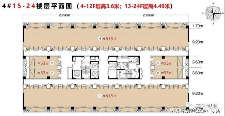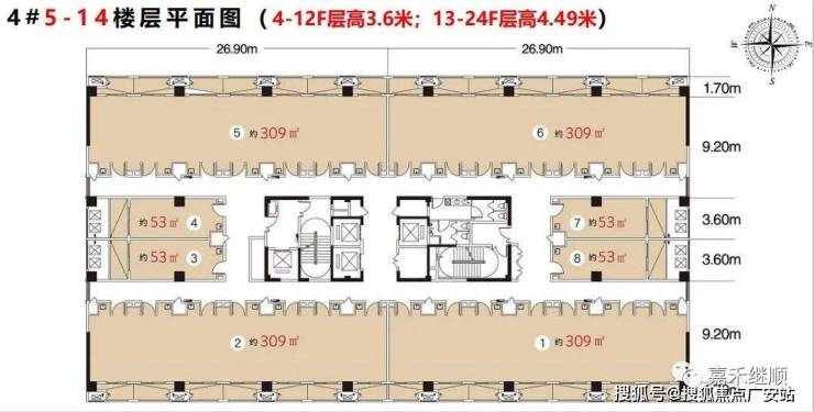 4号楼写字楼 :约53、309、617㎡(层高4.49米)单价:1.2-1.4万左右