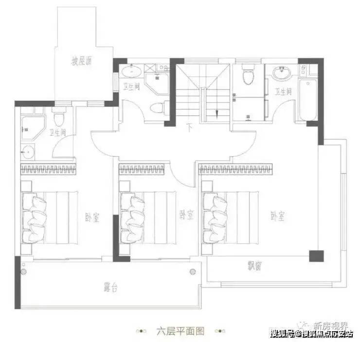 上叠带露台及阁楼,北露台约10㎡,南露台约17㎡,阁楼约40㎡