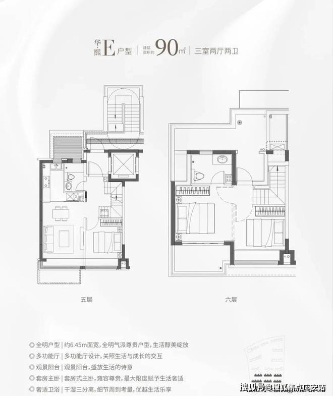 市面上90㎡左右户型两房居多,华发海上都荟建面约91㎡直接 3房一步到位 ,并且有2卫配置, 主卧进阶套房 ,功能性远超同价位竞品!